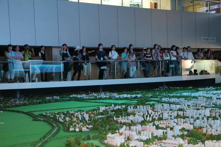 7月7日上午,参加首届海峡两岸桃花源文化发展论坛——《桃花源记》教学交流研讨活动的两岸教师参观了常德市规划展示馆和文化馆,实地见证常德城市建设新成就,亲身领略常德的文化魅力。 在常德市规划展示馆,两岸教师听取了常德城市发展规划情况介绍,观看了市情宣传片,对常德的历史底蕴、城市变迁、建设成就和远景规划进行了一个比较全面深入的了解。 两岸教师观看常德市情宣传片 两岸教师在常德城市规划馆前合影 在常德市文化馆,两岸教师参观了常德市非物质文化遗产展示厅,大家在展厅中体验了“刘海戏金蟾”的光影游戏,听了嘉山孟家女的传说、杨幺的民间故事、桃花源传说等民间文学,欣赏了精美的桃源木雕和民俗民情绘画长卷并观看了常德米粉的成品。 恰逢常德市文化馆二楼正在举办剪纸作品展,两岸教师看到精美的剪纸作品后被精湛的技艺所折服,或静静欣赏,或拍照留念。 两岸教师参观剪纸展 |